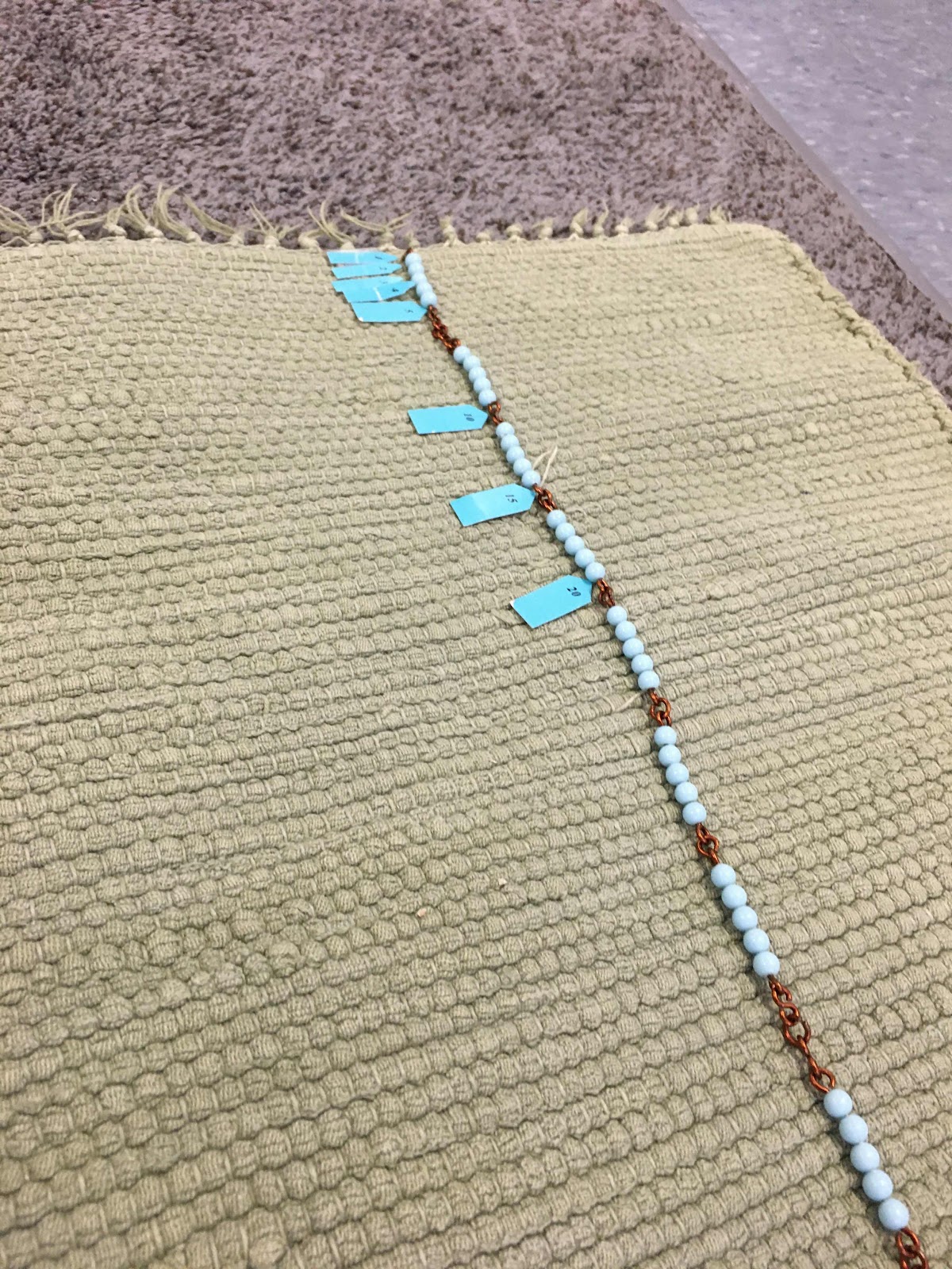 Osc are is really progressing with his number sense. It seems that he is more drawn to number related tasks than geography ones right now. Here he uses the five chain beads to identify benchmark numbers that are factors of five.